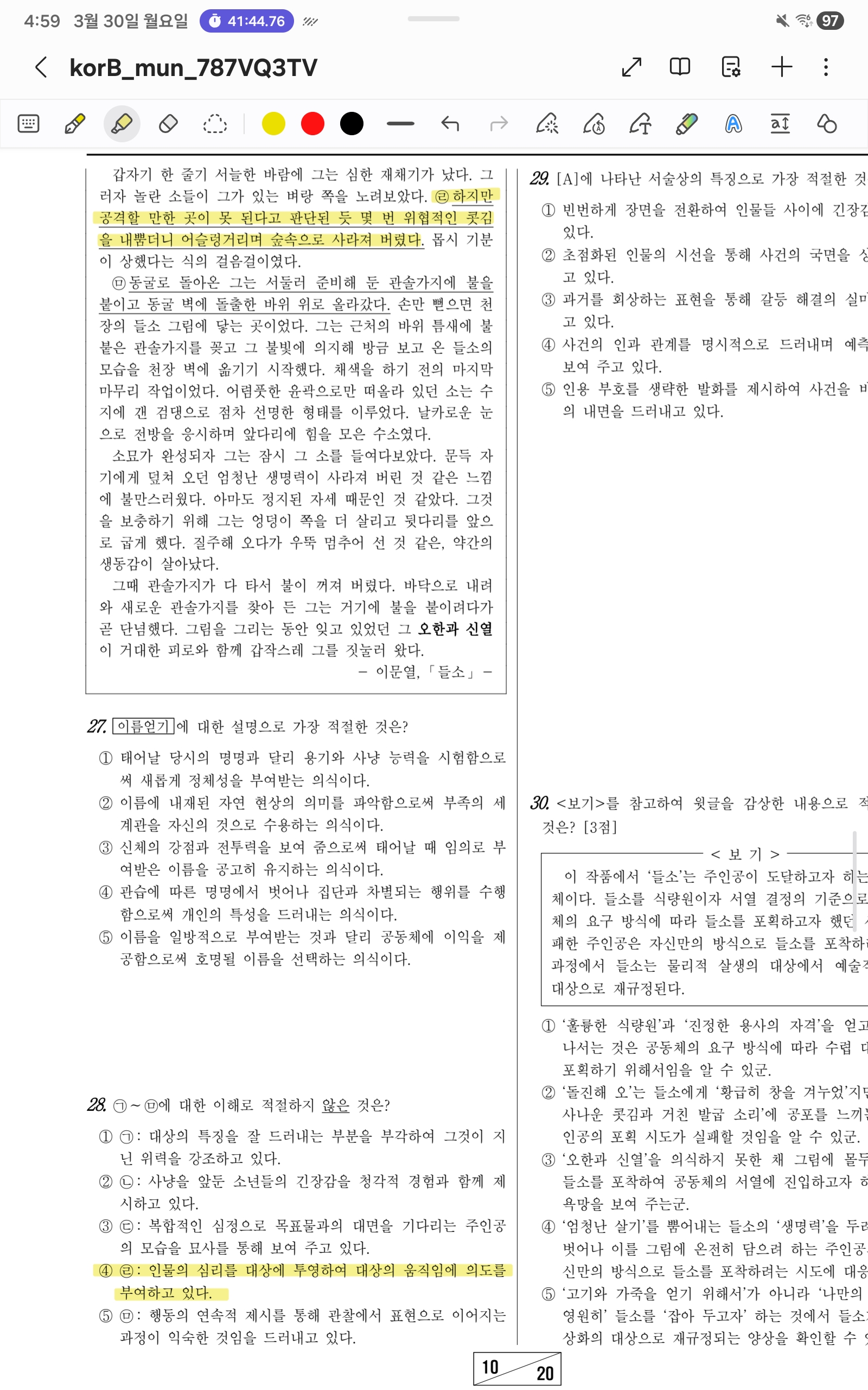 3모 28번 문제 4번 선지에서 일단 서술자는 전지적 작가이며 그를 초점화하여 서술하고 있는 것까지 파악했습니다.